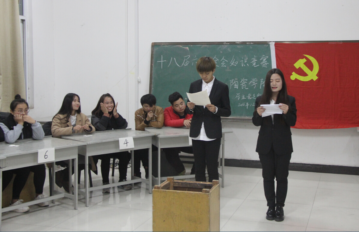 12月2日晚上7点,十大体育网站员工党支部以“学习六中全会精神,推进校园文化建设”为主题,在艺术楼413举办“第十八届六中全会知识竞赛”。参加此次活动的人员有陶瓷公司党支部干事及18位参赛人员。