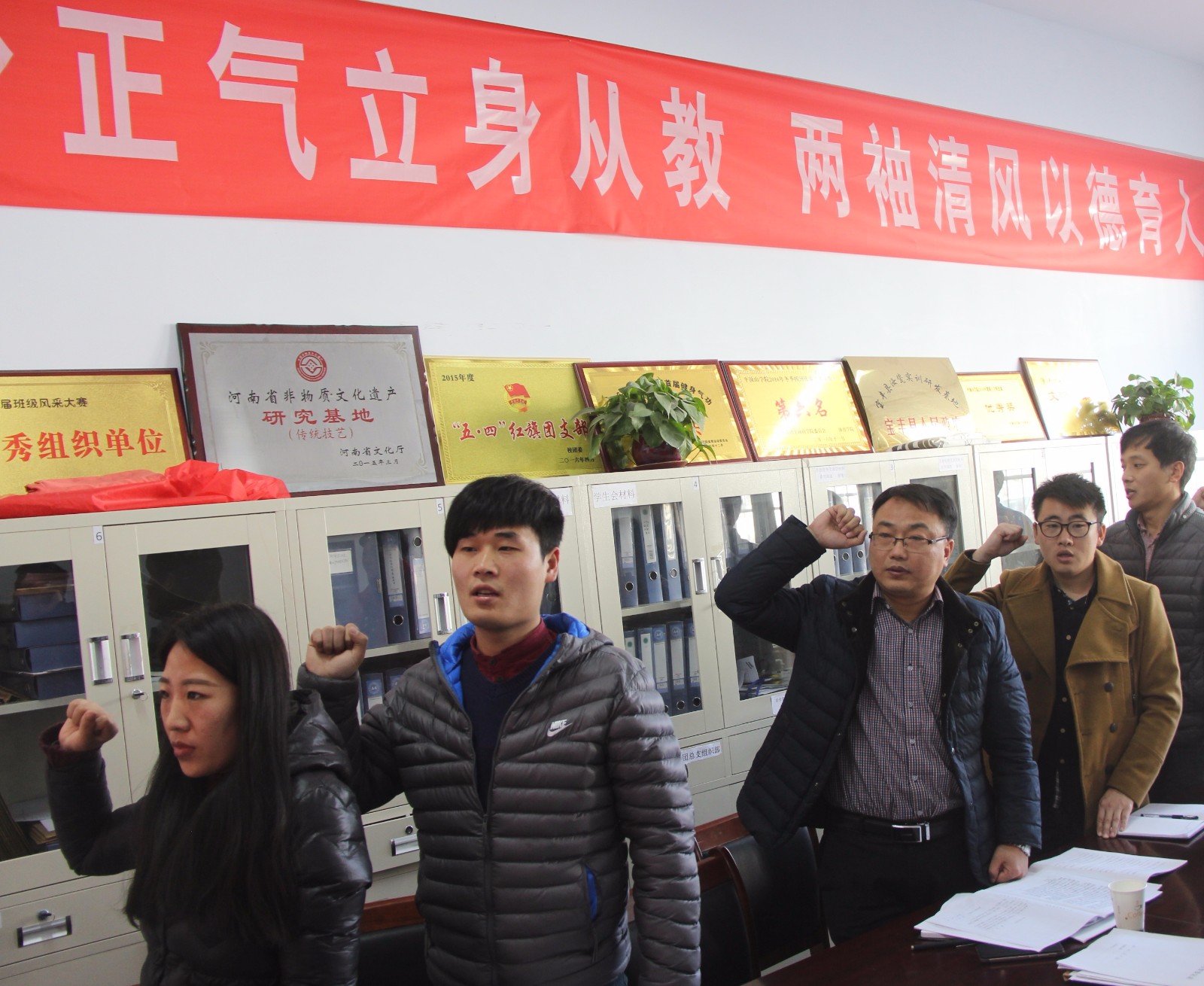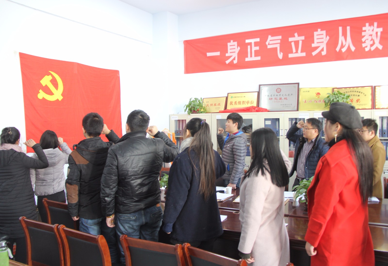 2016年12月22日下午,十大体育网站陶瓷公司党支部转正大会在艺术楼A117会议室顺利召开,大会的主要议题是讨论党支部五名同志转正事宜。公司党总支书记吴建彪,教工党支部书记刘光甫、员工党支部组织委员刘艳兵及教师党员,13、14级员工预备党员、积极分子和本次转正的预备党员出席会议。大会由刘艳兵同志主持。