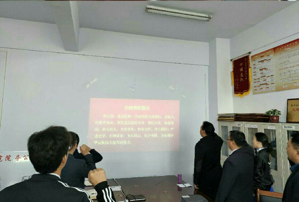 会议第五项,由副经理吴鸿昌同志带领大家重温河南省教师誓词。