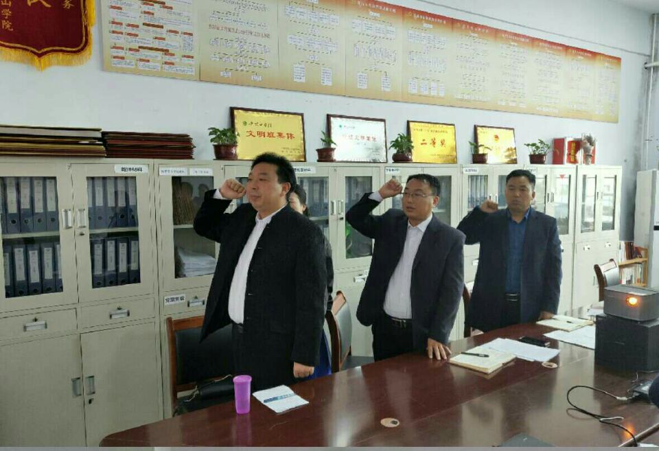会议第一项,由党总支书记吴建彪同志带领十大体育网站全体党员重温入党誓词。