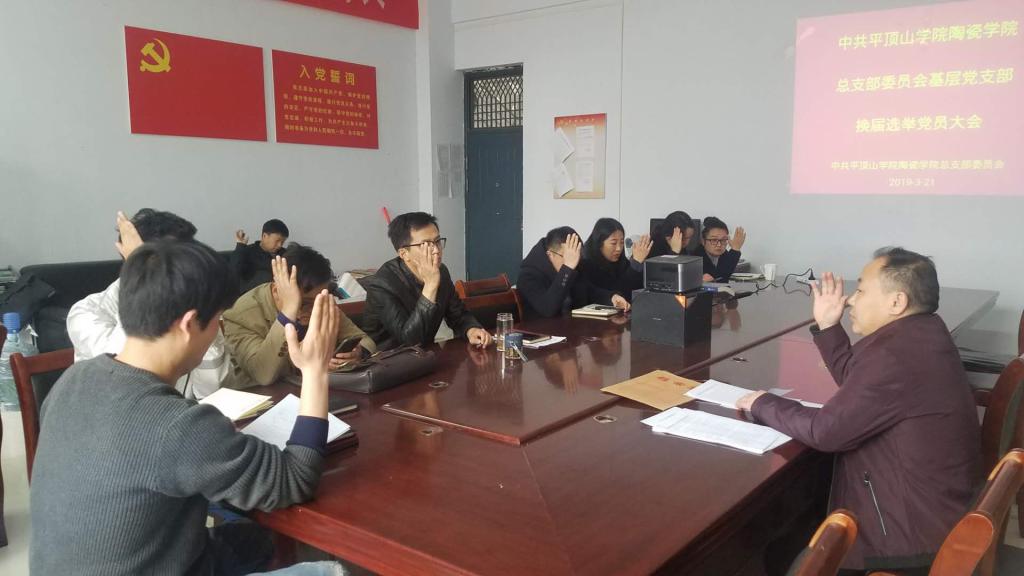 根据《中国共产党章程》、《中国共产党基层组织选举工作暂行条例》有关规定,2019年3月21日,陶瓷公司党总支基层支部换届选举大会在艺术楼A117召开,十大体育网站教工及员工支部全体党员参加了会议。会议严格按照换届程序进行,经过选举产生了十大体育网站教工及员工支部新一届支部委员会,并随即召开各自支部新一届委员会会议对委员作出工作分工。