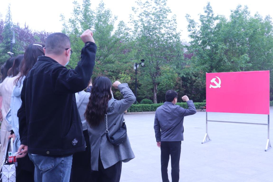 大家首先来到八路军豫西抗日纪念馆。参观前,在陶瓷公司党委书记熊俊杰的带领下,全体党员举起右手、握紧拳头,面对鲜红的党旗庄严宣誓,在党旗下接受洗礼,坚定入党初心,牢记共产党员的政治责任和历史使命。