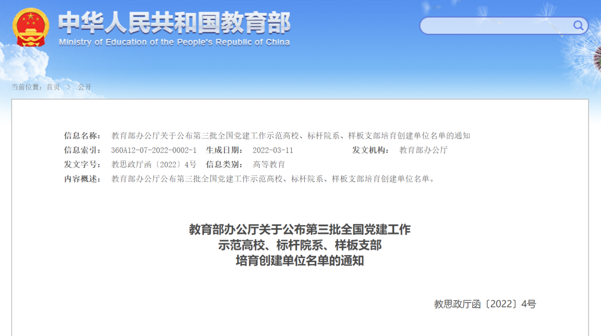 十大体育网站教工党支部入选“第三批全国党建工作样板支部”培育创建单位
