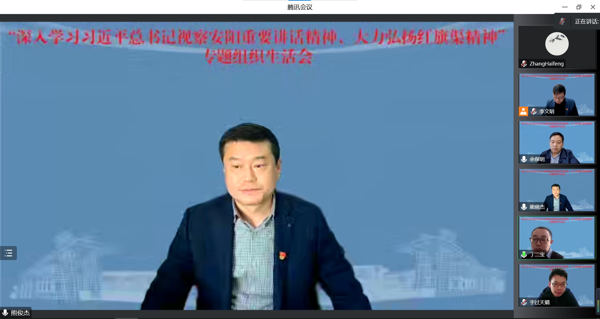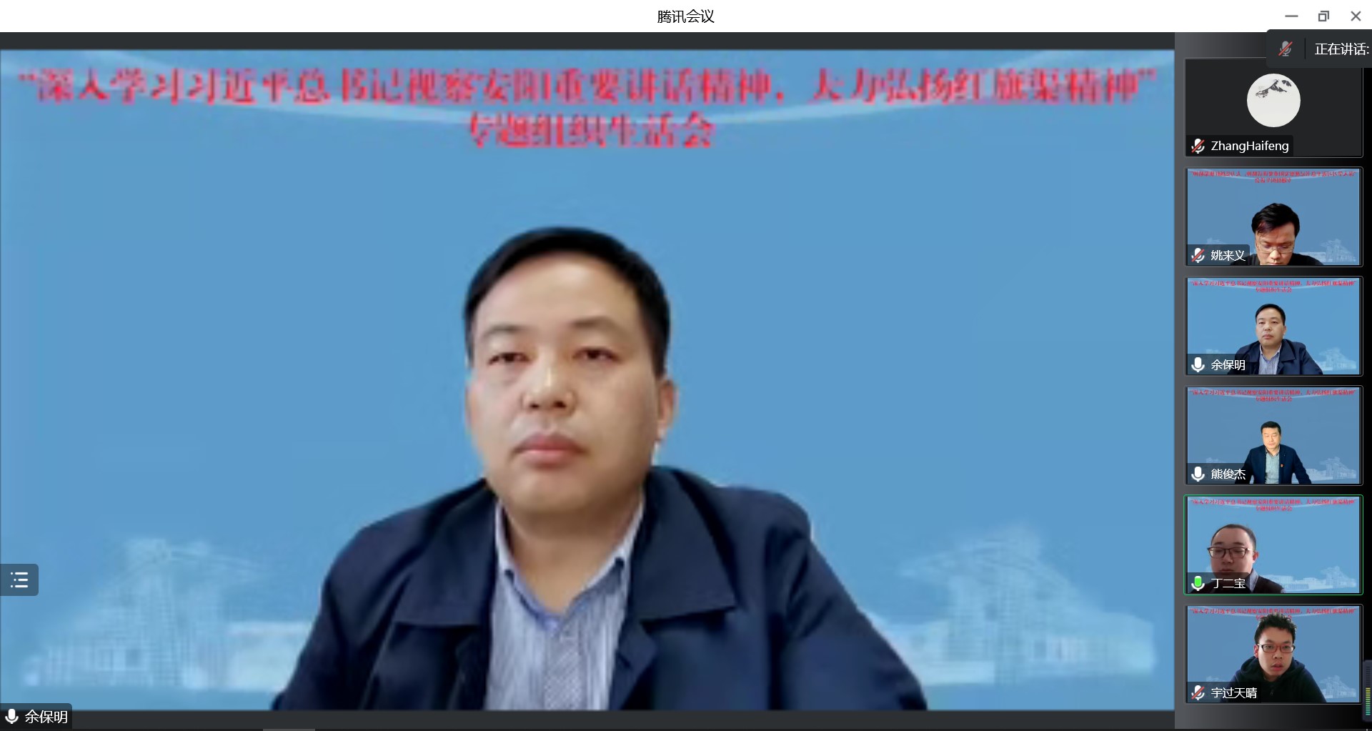 为深入学习贯彻党的二十大精神和习近平总书记视察河南安阳重要讲话精神,11月24日,十大体育网站组织全体党员在线上召开“深入学习习近平总书记视察安阳重要讲话精神,大力弘扬红旗渠精神”为主题的专题组织生活会。会前已按照公司党委要求,安排全体党员认真观看相关学习视频。会议由党委副书记、教工党支部书记余保明主持。