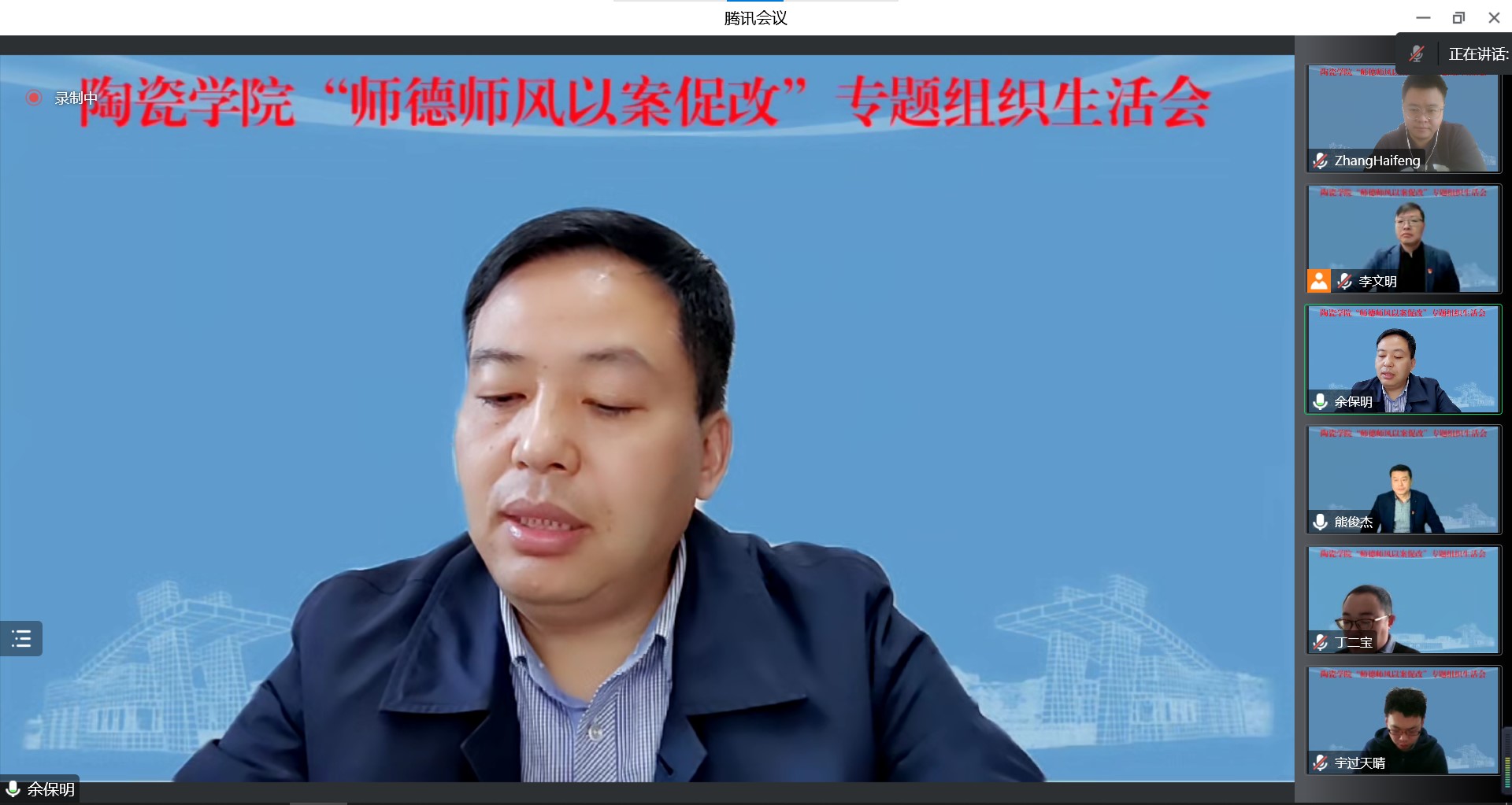 首先,党委副书记余保明领学了河南省教育厅等七部门下发的《关于加强和改进新时代师德师风建设的实施意见》。