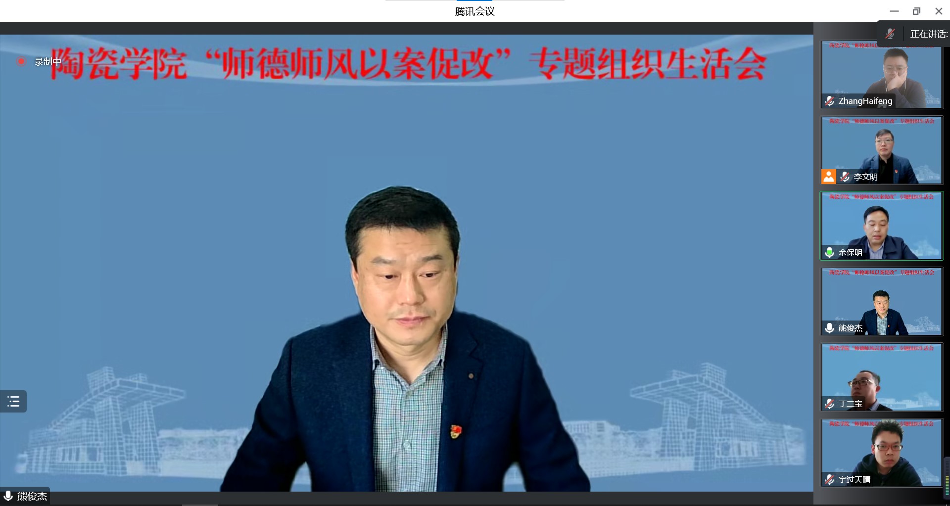 为贯彻落实习近平总书记关于师德师风建设的重要指示精神,推进教师十项行为准则的有效实施,打造一支思想政治素质过硬,职业道德水平高的教师队伍。根据公司工作安排,11月24日下午,十大体育网站以线上会议形式召开“师德师风以案促改”专题组织生活会。校工会副主席王福强到会指导。会议由公司党委书记熊俊杰主持,全体教职工参加会议。