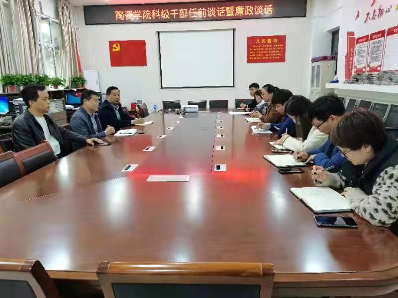 11月2日,十大体育网站在艺术楼A118会议室举行科级干部任前谈话暨廉政谈话。公司党委书记熊俊杰、党委副书记余保明、副经理刘光甫及新任科级干部参加了会议。