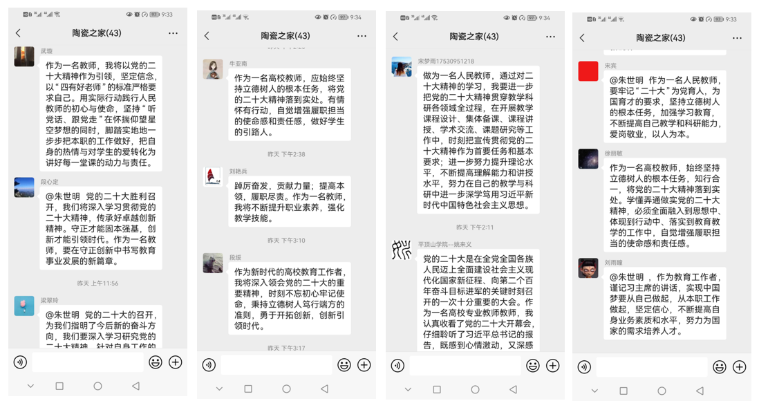 随后,各位教师通过线上、线下结合的方式,进行了个人学习感悟交流。大家纷纷表示,时刻不忘立德树人根本任务,争当新时代教育工作者的先行者和领头羊,努力为公司事业发展贡献自己的力量。