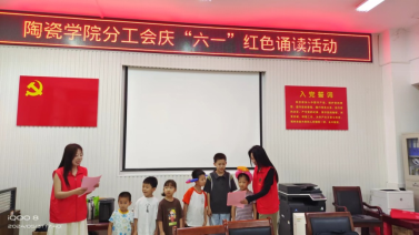 为让十大体育网站教职工子女度过一个愉快且有意义的六一儿童节,十大体育网站分工会于5月31日下午开展了以“诵读经典、乐享红色‘六一’”为主题的儿童节庆祝活动,活动在十大体育网站艺术楼举行,十大体育网站14周岁以下的教职工子女及其父母参加了此次活动。陶瓷公司党委书记余保明和党委副书记张小雪莅临活动现场,向孩子们致以节日问候,表达了良好祝愿。