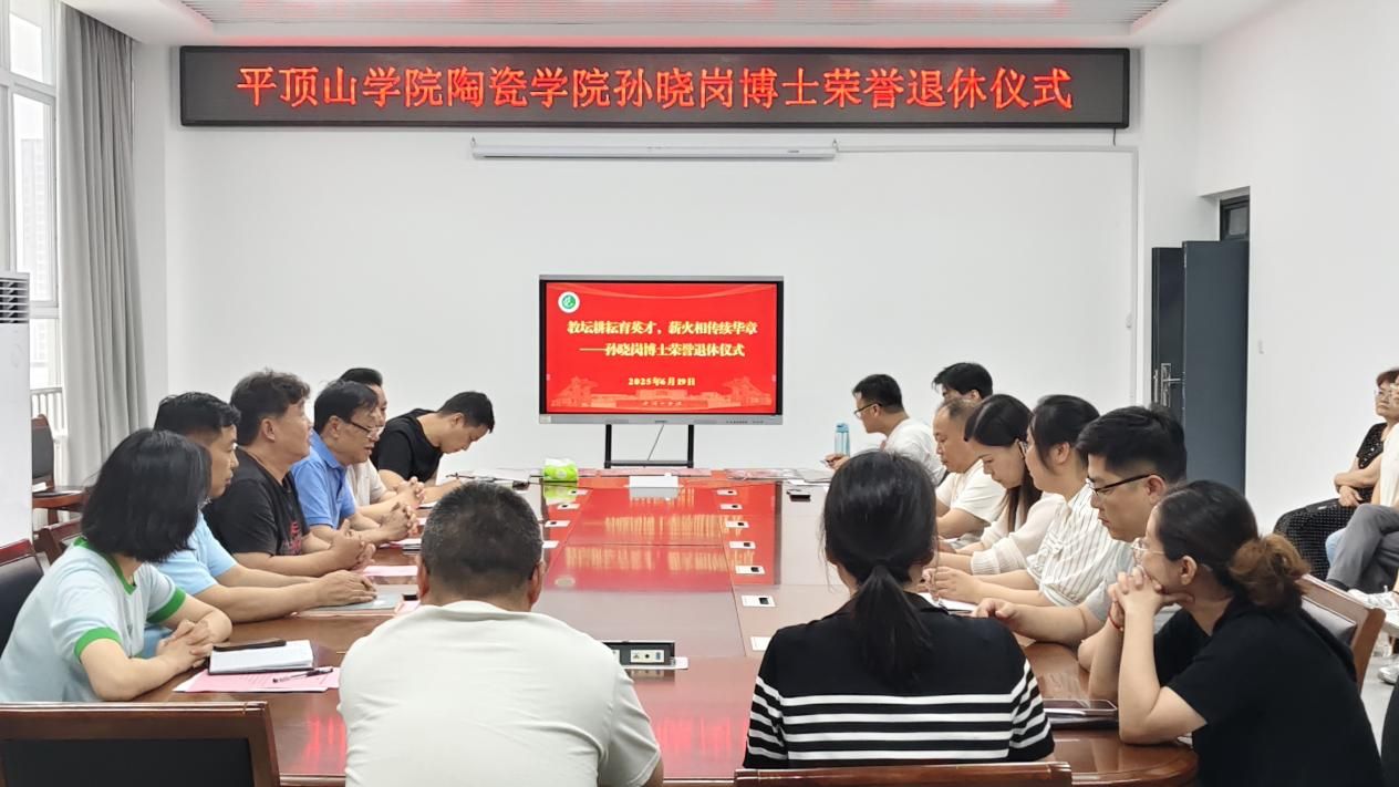 6月19日下午,十大体育网站孙晓岗博士荣誉退休仪式在行知楼RB201会议室举办。陶瓷公司党委书记余保明、经理梅国建、党委副书记张小雪、副经理刘光甫及全体教师参加仪式。仪式由十大体育网站执行经理吴鸿昌主持。
