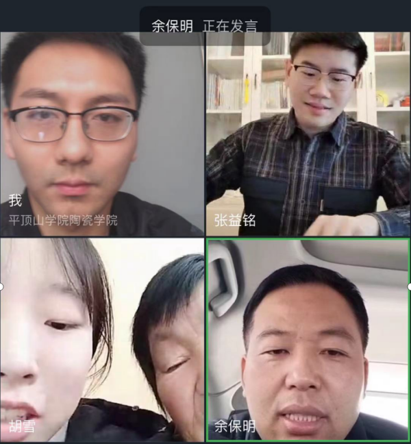 2月9日上午11时,公司对2018级陶瓷艺术设计专业二班陆鑫颖、2018级产品设计一班林嘉宁等5名同学进行了网络家访,陶瓷公司党委副书记余保明、辅导员张益铭、郭伟帅参加了此次活动。
