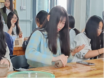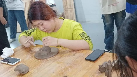 活动伊始,工作人员向大家详细介绍了陶瓷的历史,并现场演示了泥塑的步骤,引导大家如何进行泥塑。工作人员表示泥塑是一种很能发挥想象力和创造力的手工活动,一定要动手实操,用心感受才能做好泥塑。希望大家能通过切身的体验,感受泥塑的魅力所在。随后,制作经验丰富的工作人员亲自为体验者现场进行教学指导,同学们逐渐心领神会、自由创作,将自己脑中想到的美好景象尽情地用泥塑来体现。