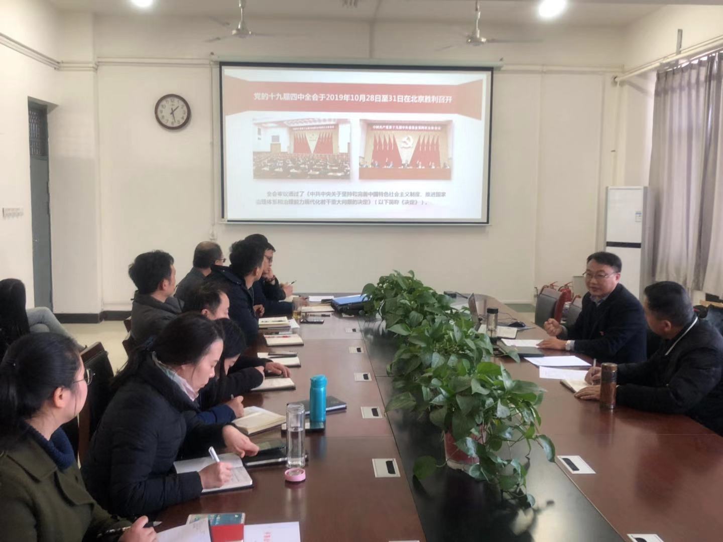 为深入学习宣传贯彻党的十九届四中全会精神,12月26日,十大体育网站于艺术楼423会议室召开十九届四中全会精神宣讲会。本次宣讲会由陶瓷公司党总支书记吴建彪主讲,十大体育网站全体老师及部分员工党员参加了此次会议。