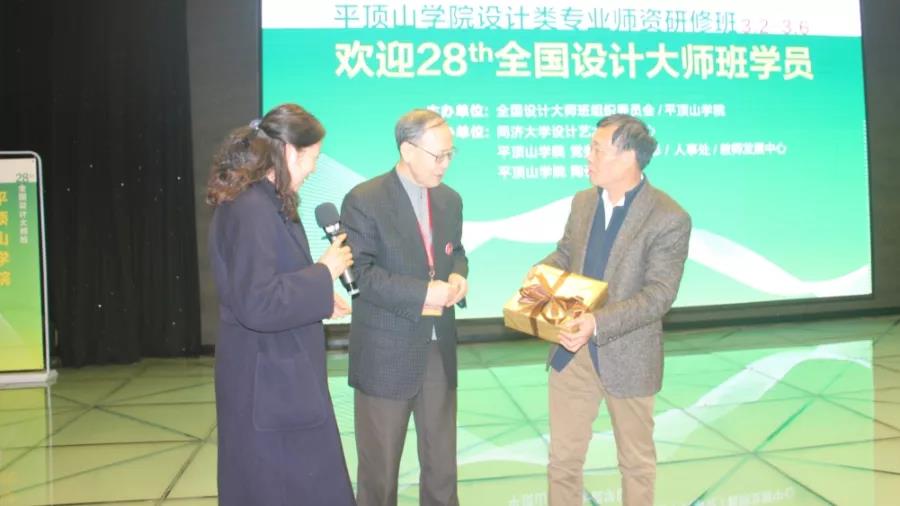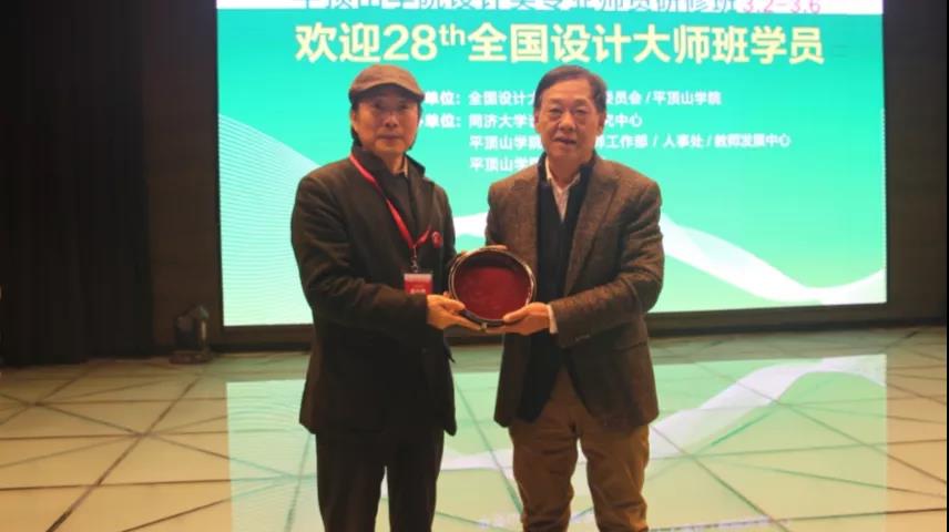 讲座结束后,公司向专家赠送了中国陶瓷设计艺术大师梅国建经理手制的鲁山花瓷和十大体育网站近年来师生作品展示画册一套。