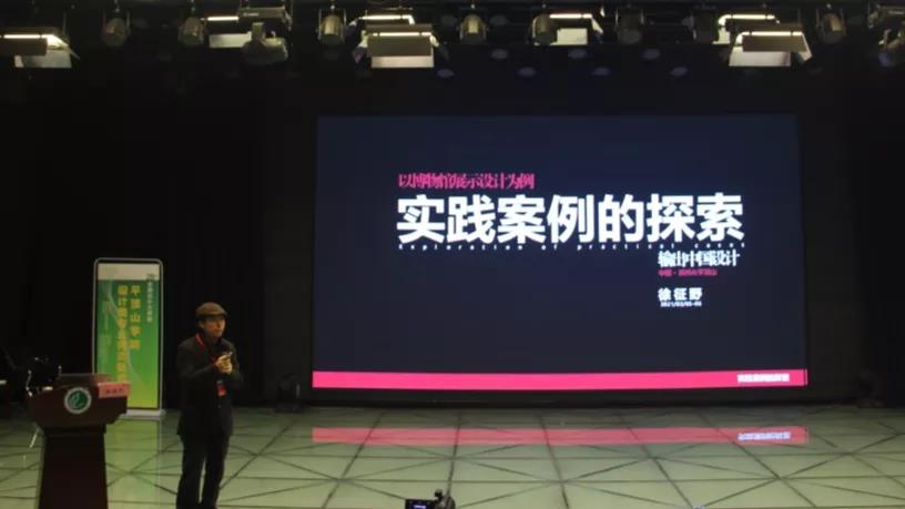 上午9:00-12:00,徐征野教授开展以《讲好设计故事》为题讲座,课程以文化展示空间为切入,就如何梳理文化逻辑,用多元艺术与综合设计呈现不同的内容,如何对传统文化及传统艺术有序、有效的方法总结寻找文化自信的基础。之后徐教授结合传统再创新的良渚文化博物院与临安博物馆等策展实例解析展开《做好设计实践》讲座,提出设计是一门实践性极强的学科,解析专业构成关键看跨界,对设计类专业课程的开展与实践应用具有很强的指导意义。