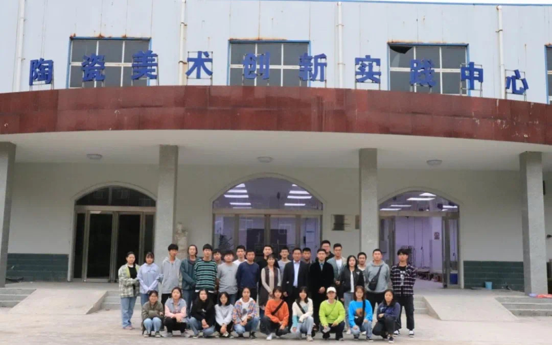 老师和同学们在陶瓷美术实践创新中心前的合影