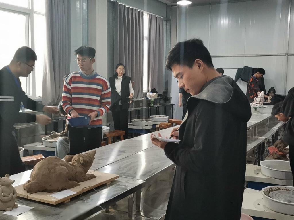 12月5日下午,公司第四届拉坯暨雕塑技能大赛在实训创作工场拉坯教室举办。十大体育网站专业课教师宋宾、段心定、周贝、孙稳应邀担任本次大赛的评委,党总支副书记余保明到比赛现场进行指导。