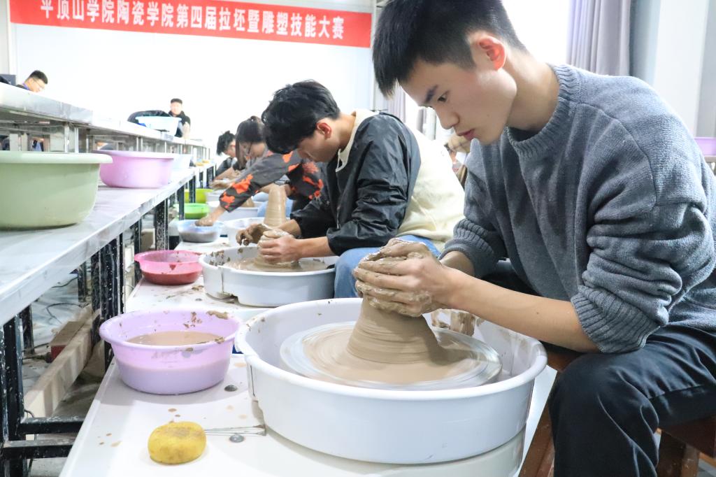 本次大赛设陶瓷造型与陶瓷雕塑两个比赛项目,比赛共分为两轮进行,参赛选手按照比赛主题,依据对作品样式、尺寸要求,在规定时间内进行创作。比赛过程精彩纷呈,选手们利用轮盘转动的惯性,压窝、拨高、挤压陶泥,凭借娴熟的手法和精湛的技法,一个个精美的坯体跃然成器。比赛结束后,评委老师依照评分标准依次进行打分,并予以点评指导。经过两个多小时的评比较量,最后共评出一等奖四名、二等奖九名、三等奖十五名。