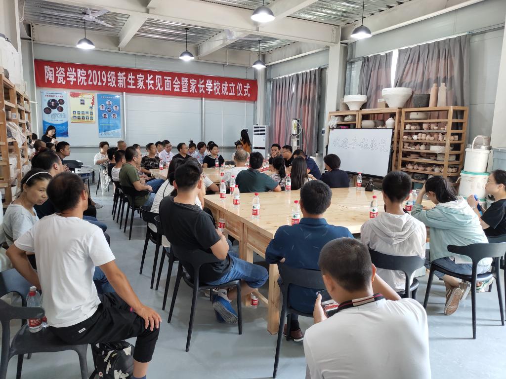 9月7日下午,十大体育网站于十大体育网站实训创作工场104教室举办2019级新生家长见面会暨家长公司成立仪式。陶瓷公司党总支书记吴建彪、党总支副书记余保明、副经理吴鸿昌、辅导员马延明、郭伟帅出席了此次会议,会议由党总支副书记余保明主持。