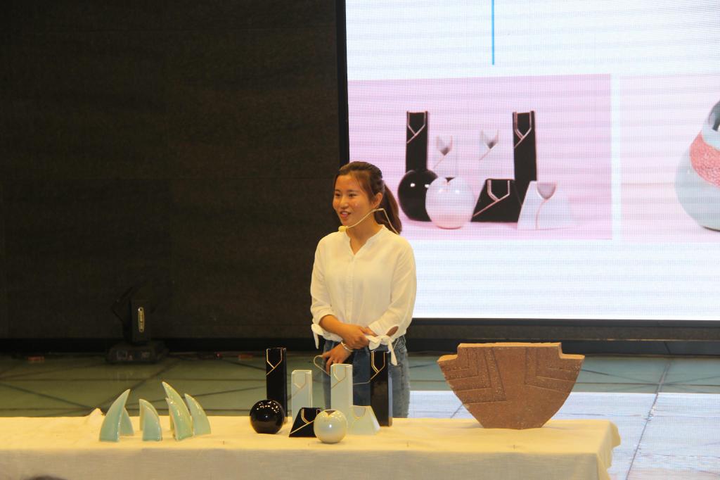 答辩会分为毕业生作品创意陈述、提问与答辩、答辩人总结等环节。毕业生按事先抽签顺序,结合实物与PPT向大家阐述作品的设计灵感、制作流程、内涵创新等内容。评委老师针对员工的汇报内容,结合陶瓷设计专业相关理论知识进行提问,员工现场进行回答。专家评议小组根据每个毕业生的作品设计质量、答辩表现等综合指标给出相应成绩。最后,担任本次答辩委员会主席的陈涛教授做了整体点评,其中,王聆燃同学的作品得到了评委们的一致认可,被评为最优作品。