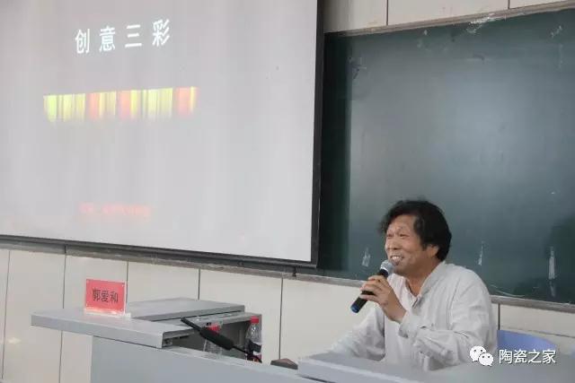 郭爱和教授的讲座以“创意三彩”为主题,带领同学们“品读”洛阳三彩的前世今生。他首先从三彩的名称概念切入,指出并纠正了社会上对于“唐三彩”、“洛阳三彩”的普遍性的认识误区。依据古人老子哲学思想,深入剖析“三彩”之“三”在中国文化中的深刻内涵,准确的为“三彩”下定义:三彩不是三种颜色的陶瓷,它其实是一种这类陶瓷的统称,并不单指有三种颜色的陶瓷。紧接着,郭爱和教授追溯中国陶瓷的发展史,结合大量文献,
