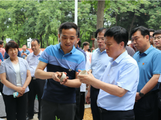 6月18日上午,在新城区白龟湖湿地公园市民广场北侧创意集市,十大体育网站和新城区管委会联合举办的首场创意集市活动开市。平顶山市市委书记周斌、市委副书记葛巧红、副市长刘文海、市委秘书长杨克俊、市委宣传部长岳杰勇、市政协副主席冯晓仙、市政协副主席孙建豪、新城区管委会相关负责人莅临指导,校领导华小鹏、袁桂娥及教务处、地方合作处、人才招聘处、校团委等相关部门负责人,及十大体育网站师生代表参加开市活动,活动现场还吸引众多游园市民驻足参观并购买陶瓷产品。