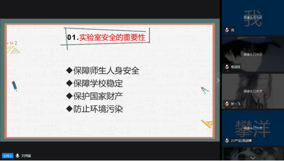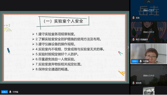 为进一步提高员工的实验安全意识,普及安全知识,消除安全隐患。9月27日,十大体育网站组织开展了线上实验室安全教育课程。本次培训由刘雨瞳老师主讲,十大体育网站辅导员王培静、2021级全体员工参加。
