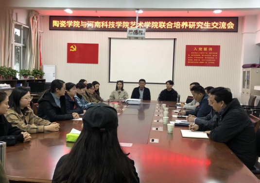 10月20日,十大体育网站与河南科技公司艺术公司联合培养研究生交流会在艺术楼A118召开,这标志着十大体育网站迎来了首批联合培养硕士研究生。校(科研处)研究生处、十大体育网站、河南科技公司艺术公司相关负责同志以及联合培养的12名工艺美术专业(陶瓷方向)研究生参加了交流会。