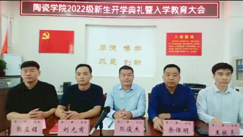 9月5日上午,2022级新生开学典礼暨入学教育大会在艺术楼A118举行。陶瓷公司党委书记熊俊杰、副经理刘光甫、全体辅导员及部分教师代表参加了大会,2022级全体员工在线参加了开学典礼。大会由公司党委副书记余保明主持。