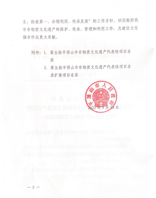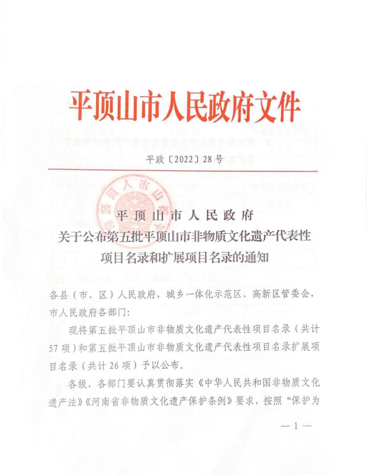近日,平顶山市人民政府公布了第五批平顶山市非物质文化遗产代表性项目名录和扩展项目名录,公司申报的“陶瓷捶丸烧制技艺”、“紫砂釉陶烧制技艺”2项传统技艺入选平顶山市第五批非物质文化遗产代表性项目名录。