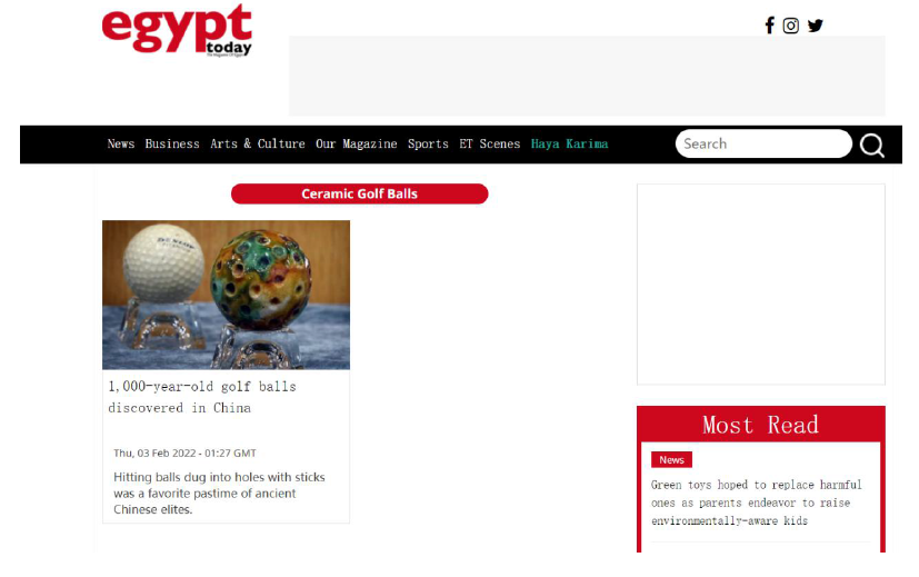 《今日埃及》报道:1,000-year-old golf balls discovered in China(中国发现1000年前高尔夫球)