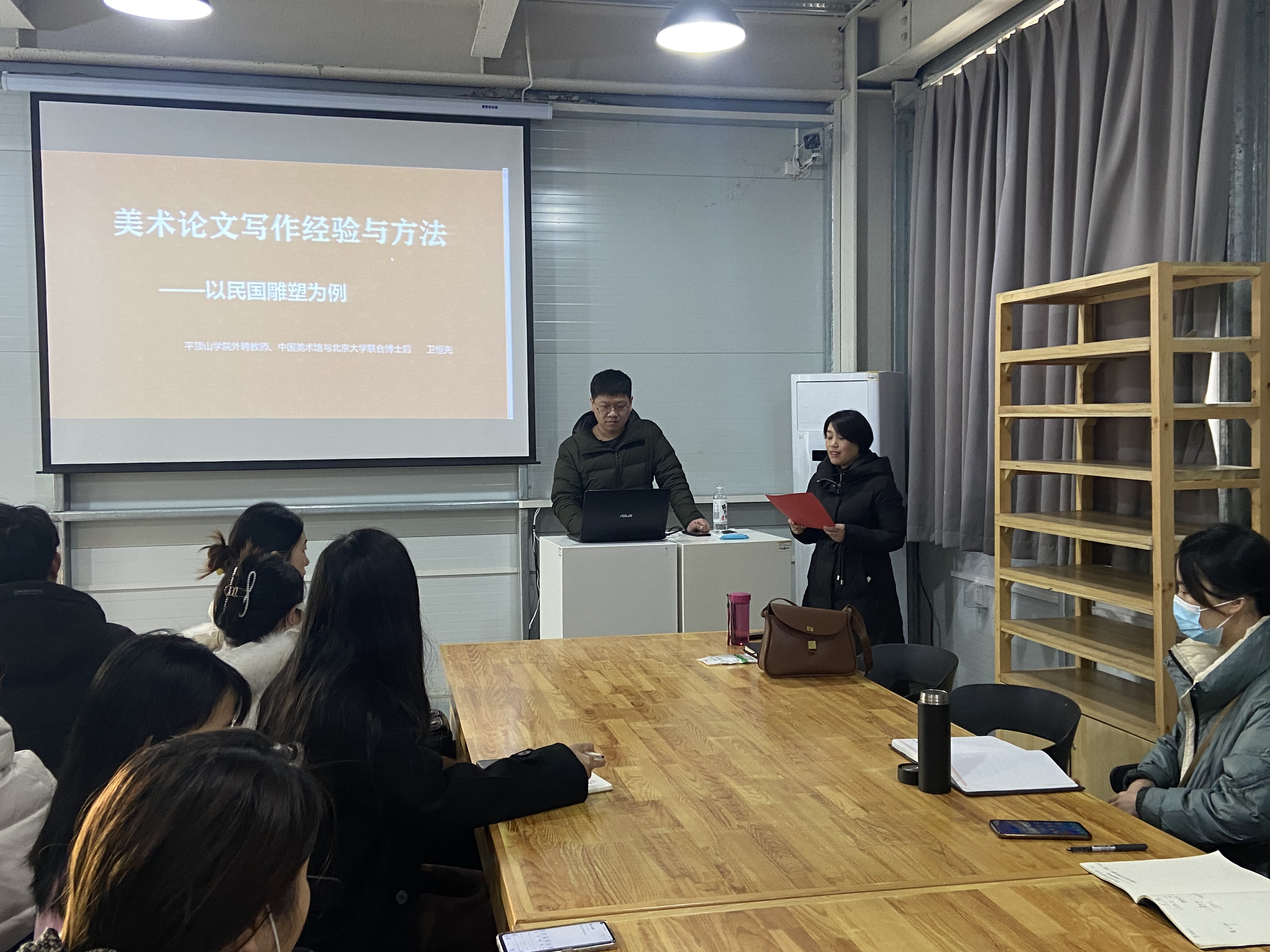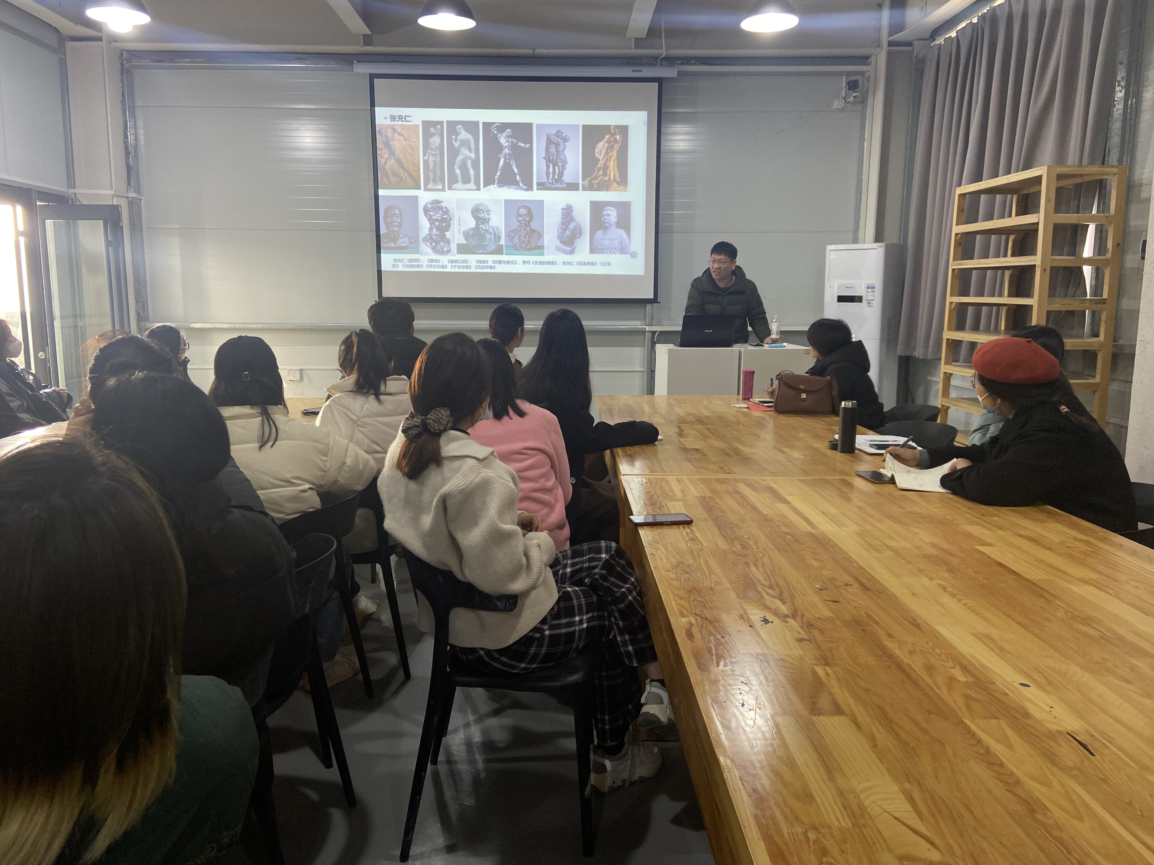 2021年12月9日上午,公司邀请中国美术馆与北京大学联合招收博士后卫恒先博士于陶瓷实训工场G204教室做了题为《美术论文写作经验与方法—以民国雕塑为例》的讲座,2018级陶瓷艺术设计和产品设计专业员工参加讲座,讲座由十大体育网站教学科研办公室副主任徐丽敏老师主持。